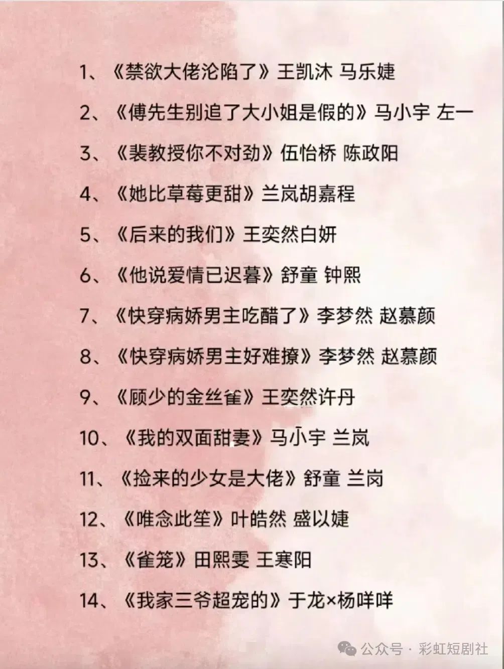 好了,2024年短剧盘点就到此结束了,本篇月度爆款短剧罗列并非罗列所有爆剧。(本应该12.31发出的结果我图片还没找完,手机用图文消息发了简单的通知没想到发完直接给我显示1.1 00:00发表,占用了25年第一天的发文机会,开通账号时没选服务号我恨啊!!!)欢迎评论区留言说出你心中的年度最佳短剧~