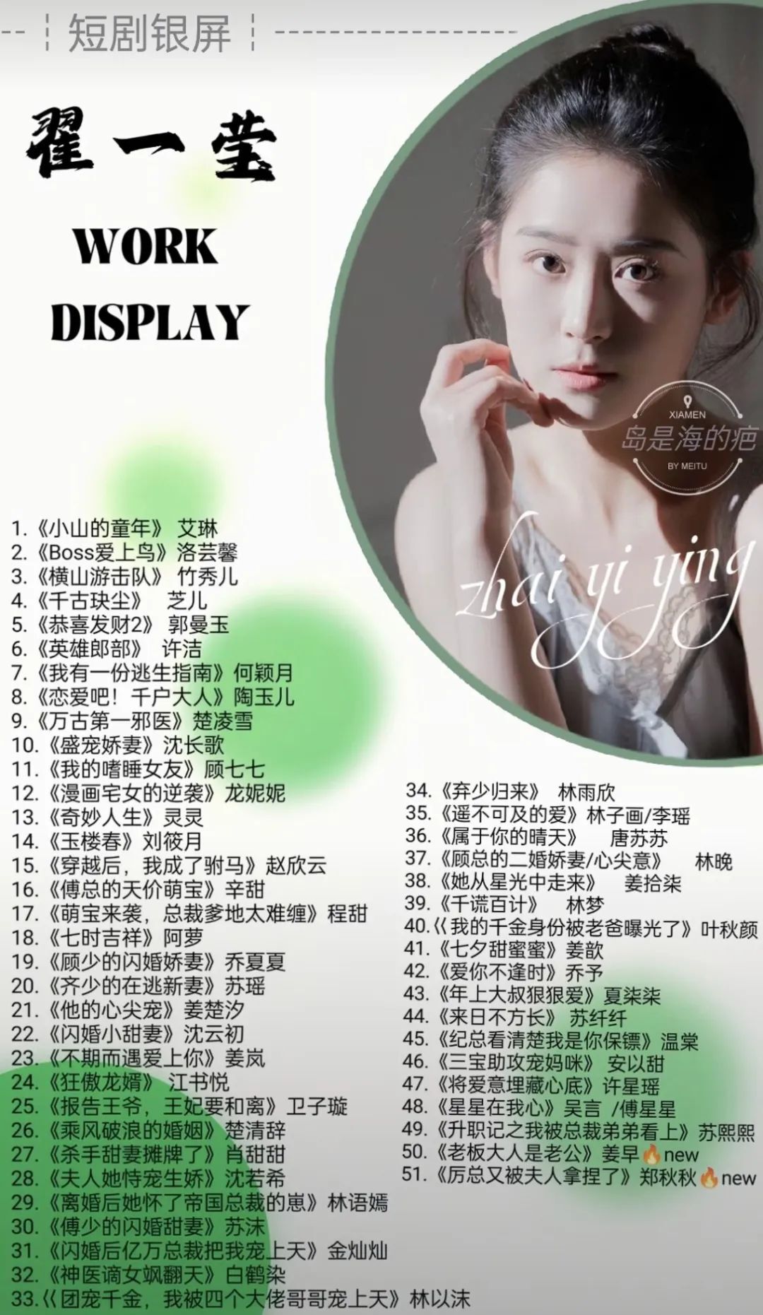 翟一莹的剧单如下